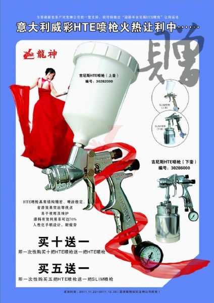 吉尼斯HTE噴槍11月促銷 吉尼斯HTE噴槍2011年11月促銷 (活動已結(jié)束,感謝您的關(guān)注) 一、主題: 吉尼斯HTE噴槍讓利促銷 二、活動目的: 讓利回饋給力促銷 三、活動時間: 1、 時間:2011年11月21日至2011年12月30日 2、 時長:共計40天 四、活動內(nèi)容: 1、 買十送一(即一次購買十把HTE噴槍送一把HTE噴槍) 2、 買五送一(即一次購買五把HTE噴槍送一把SLIM噴槍) 市場部 2011年11月17日 宣傳海報 2011-11-19 12933