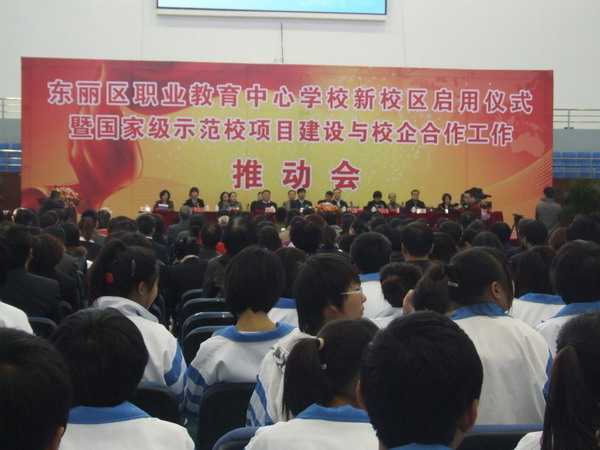 11月6日上午,東麗區(qū)職業(yè)教育中心學(xué)校在東麗湖新校區(qū)舉行新校區(qū)啟用儀式暨國家級示范校項目建設(shè)與校企合作工作推動會。市教委副主任劉欣出席并講話。教育部、中國汽車維修行業(yè)協(xié)會、市教委有關(guān)負責(zé)人,以及來自空港物流加工區(qū)、天津經(jīng)濟開發(fā)區(qū)的108家企業(yè)代表參加。 東麗區(qū)職業(yè)教育中心學(xué)校是該區(qū)唯一一所職業(yè)學(xué)校,是以中職為主體,集電大、社會培訓(xùn)為一體的多層次、多門類辦學(xué)實體。新校區(qū)投資3.6億元,占地面積382畝,建筑面積6.45萬平方米,可容納90個教學(xué)班,滿足4千余名在校生的學(xué)習(xí)和生活需要。同時,非學(xué)歷教育年均培訓(xùn)人數(shù)可達1萬人,既可滿足東麗區(qū)及周邊地區(qū)適齡人口接受優(yōu)質(zhì)職業(yè)教育的需要,又可服務(wù)于農(nóng)村勞動力轉(zhuǎn)移培訓(xùn),同時為空港物流加工區(qū)、泰達西區(qū)等園區(qū)經(jīng)濟培養(yǎng)技術(shù)型、技能型生產(chǎn)、管理和服務(wù)人才。