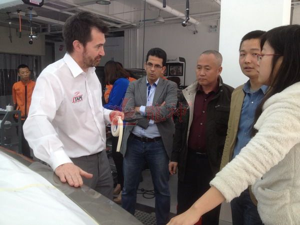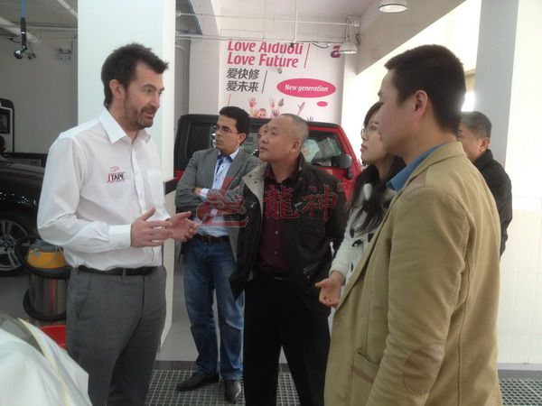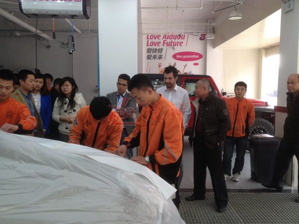 2013年特邀國外專家赴北京車爵士演示車縫泡膠條的使用 本司訊:2013年4月北京晴空萬里,龍神公司特邀英國專家一行五人,來到了北京車爵士進行汽車噴涂遮蔽技術交流。首先公司一行了解車爵士的汽車噴涂情況及詢問了使用的遮蔽工具情況。隨后英國專家針對在汽車噴漆時難噴涂的車門縫隙、玻璃死角等地方的專業(yè)遮蔽工具的演示。車縫泡沫膠:用于車身所有縫隙的遮蔽,有效隔離及遮蔽漆霧噴入車縫里。 2013-04-08 12206