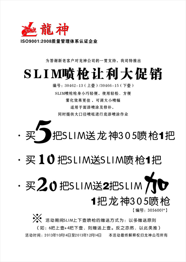 SLIM噴槍2013年10月至12月份促銷方案