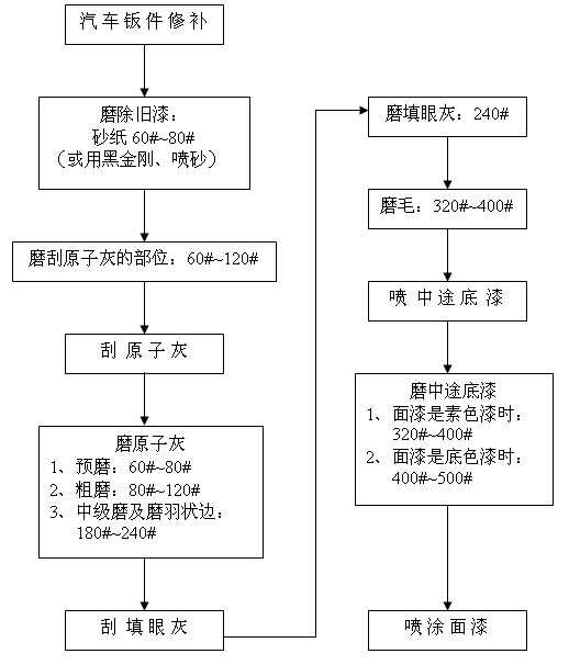 汽車修補(bǔ)干磨程序及砂紙的選擇 備注: 1、除舊漆時(shí)采用黑金剛配除漆除銹機(jī)能夠快速地除去平面、狹縫及凹凸不平表面的舊漆與銹漬;采用噴砂槍噴砂還可以很快地去除某些孔隙、縫隙或手都很難伸進(jìn)去的部位的舊漆與銹斑; 2、在磨填眼灰、中途底漆和尤其有邊角位、弧度位的表面時(shí)配打磨緩沖墊(置于圓盤砂紙和托盤之間)能夠使打磨作業(yè)更加順暢,并能獲得規(guī)則的表面質(zhì)量。 2007-08-25 12464