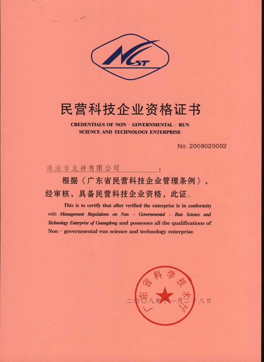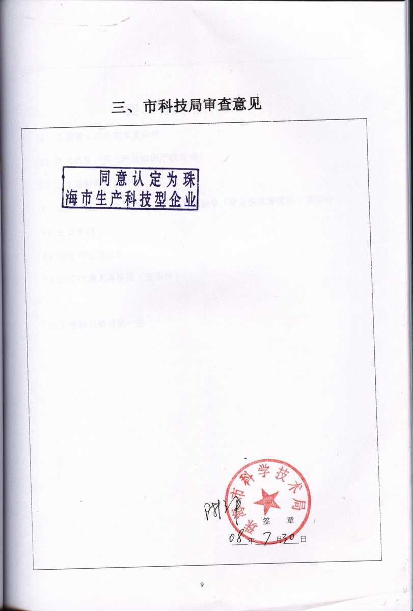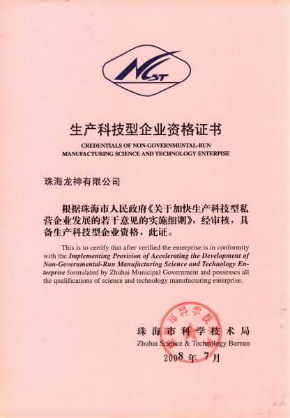 資格證書 一、ISO9001:2008質(zhì)量管理體系認(rèn)證ISO9001:2008質(zhì)量管理體系認(rèn)證證書 二、廣東省民營科技企業(yè)資格證書民營科技企業(yè)資格證書 廣東省民營科技企業(yè) 三、珠海市生產(chǎn)科技企業(yè)證書生產(chǎn)科技型企業(yè) 珠海市生產(chǎn)科技型企業(yè) 認(rèn)定證書 生產(chǎn)科技型企業(yè)資格證書(以上圖片均可點(diǎn)擊放大) 2012-11-27 37590