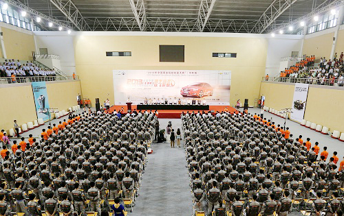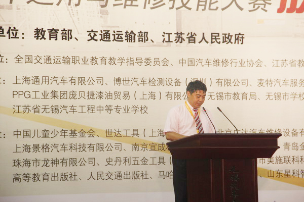 620上午,2013年全國職業(yè)院校技能大賽中職組“雪佛蘭杯”汽車運用與維修技能大賽開幕式在無錫汽車工程中等專業(yè)學(xué)校體育館舉行。交通運輸部道路運輸司王水平副司長、江蘇省教育廳楊湘寧副廳長、無錫市人民政府華博雅副市長、大賽主贊助商——上海通用汽車有限公司黨委書記黃強出席開幕式并致辭。裁判員代表洪永楠、參賽選手代表何宇先后宣誓。大賽開幕式由國家教育部職成教司農(nóng)村教育處劉杰處長主持。