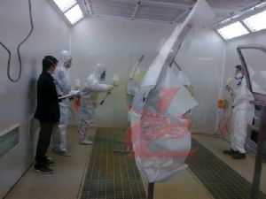 24日上午8點30分,比賽正式拉開戰(zhàn)幕。各代表隊選手統(tǒng)一著裝龍神贊助的鈑噴防護用品,全身心地投入到比賽中去。選手們訓(xùn)練有素,工具準備、動手加工一氣呵成,扳手、噴槍,樣樣工具用起來得心應(yīng)手,表現(xiàn)了參賽選手們良好的精神風(fēng)貌、扎實的基本功。