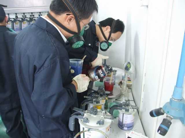 老師們正在進(jìn)行調(diào)漆